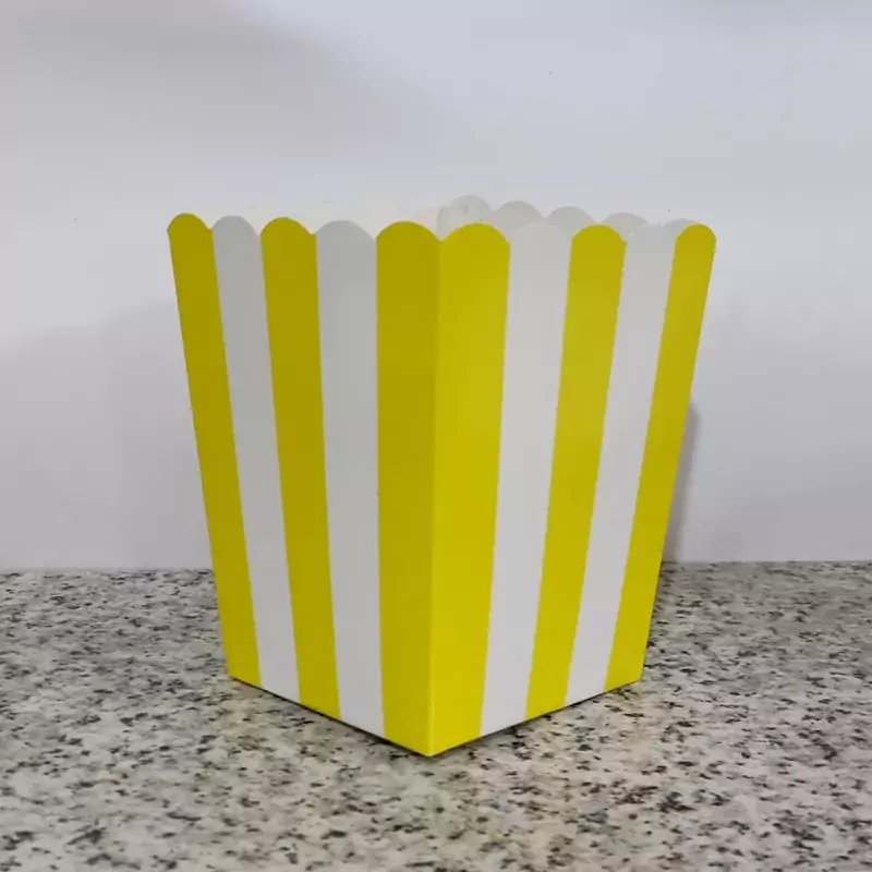 تم تولد ظرف پاپ کرن تم زرد رنگ راه راه ( پک ده عددی)