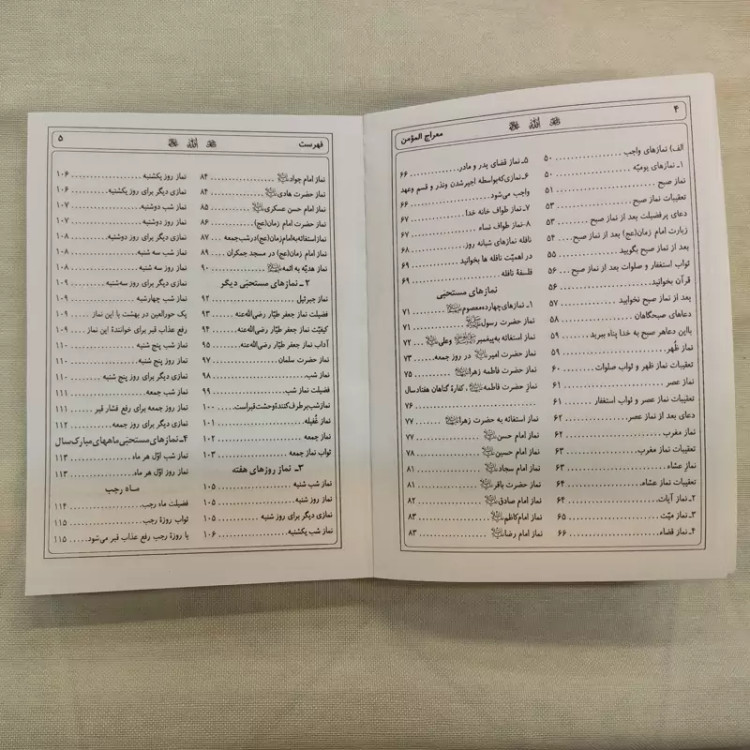کتاب معراج المومن، شامل کلیه نمازهای واجب و مستحب در طول سال، بانضمام ادعیه های معتبر، تعقیبات نماز و دعای گنج العرش