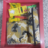 جعبه پک هدیه جامدادی و دفترچه پارچه ای ارتشی در ابعاد 25 در 30