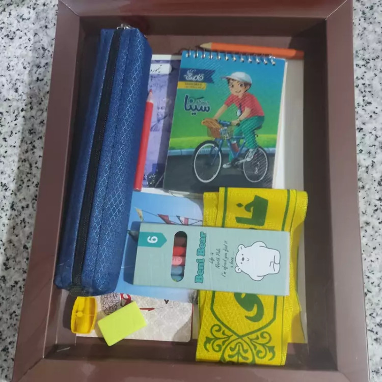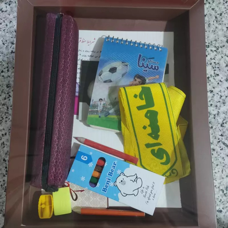 جعبه پک هدیه جامدادی و دفترچه برزنتی در ابعاد 25 در 30 سه رنگ