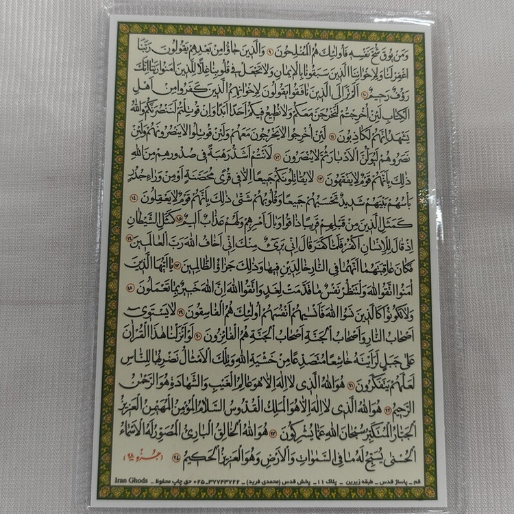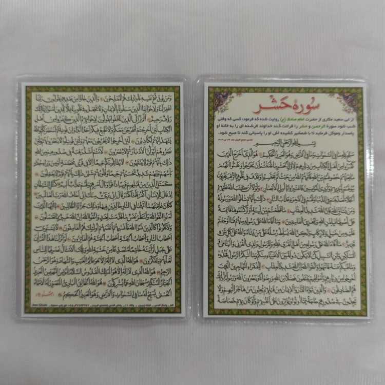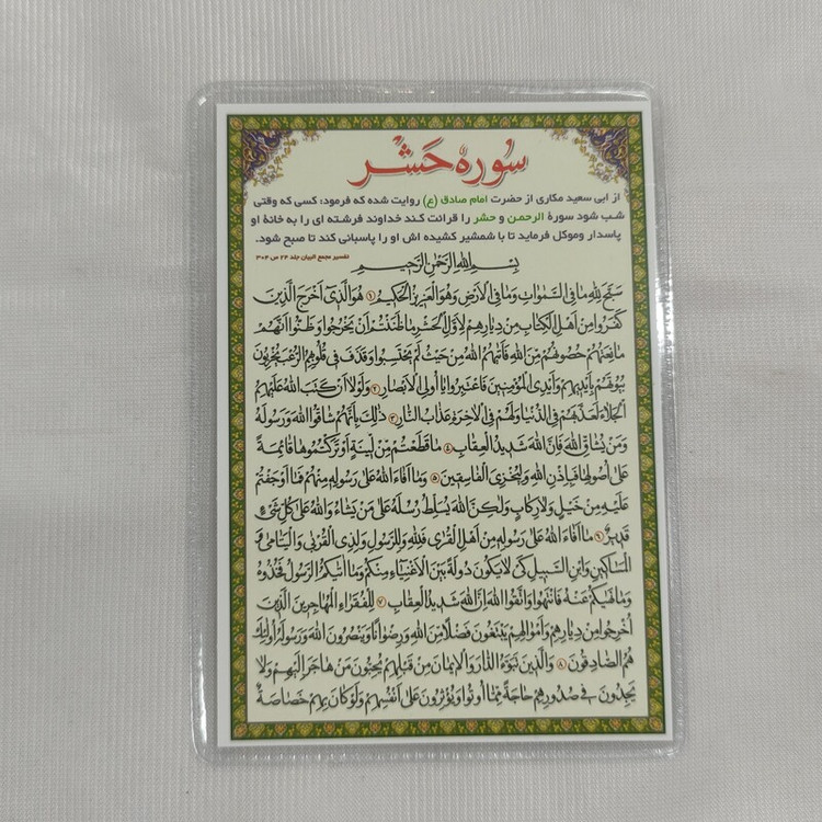 سوره حشر تک برگی پشت و رو پرس شده گزیده ای از تفسیر مجمع البیان ذکر شده