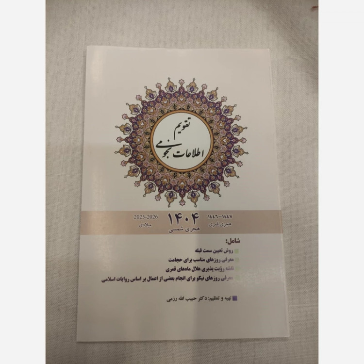 تقویم نجومی شامل: روش تعیین سمت قبله معرفی روزهای مناسب حجامت نقشه رویت پذیری هلال ماه های قمری معرفی روزهای نیکوبرای انجام بعضی اعمال براساس روایات اسلامی